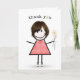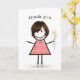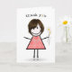 Niedliches Strichmännchen mit Haar, Sneakers, Gingham Kleid, Perlenhalskette und zartem Bouquet für Dankeschön. Die Farbe des weißen Hintergrunds kann geändert werden. Alle Texte können bearbeitet werden.
