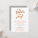 Eine typografische Erntedank-Potluck-Einladung mit der Phrase "in allem geben Dank" in modernen handgeschriebenen Stil Pinsel Skript-Schriftart, und fallenden illustrierten Blätter. Die Einladung kann mit Ihren geraden Details personalisiert werden und bietet Herbstfarben von Orange, Braun, Senfgelb und Grau.