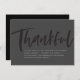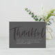 Dieses Dinner in Schwarz/Weiß mit einem fett gearbeiteten Pinselskript "dankbar" und moderner Typografie für Ihre Party-Details. Diese Einladung koordiniert mit der Lea Delaveris Design Thankful Erntedank Kollektion. Der Backer ist schwarz gesprenkelt.