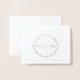 Echte Silber Foil Dankeschön Notizkarte wird in Weiß mit Beispielname und Randstreifen und Akzent-Druck in echter Silberfolie gezeigt. Passen Sie diese Karte an, und ändern Sie den Beispieltext mit dieser Vorlage auf Ihre eigene, oder kaufen Sie wie gezeigt.