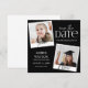 Moderne Dann-und-Jetzt-2-Foto-Abschluss-Save-the-Date-Karten mit 2 Fotos des Absolventen aus verschiedenen Lebensphasen. Die minimalistische Karte enthält eine stilvolle Ankündigungvorlage, die leicht zu bearbeiten und zu personalisieren ist.