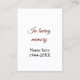 dans l'amour nom de mémoire texte keepsaké carte d