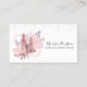 Un élégant carte de visite de danse avec des chaussures de danse roses, des roses et des perles, avec une diffusion de parties scintillant rose.