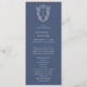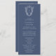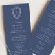 Dieses dunkelblaue, minimalistische Marinehochprogramm der Daphne Collection eignet sich perfekt für eine traditionelle Hochzeit. Das schlichte und dennoch klassische Design besticht durch ein elegantes und zeitloses Monogramm aus königlichem Wappen mit Blumenbeeten und Grünpflanzen, die die Initialen des Ehepaares umgeben. Geben Sie die Namen des Paares, das Datum und den Ort der Hochzeit, Dankeschön-Nachricht, Dienstorden, Hochzeitsfeier und ein optionales "in Loving Memory"-Denkmal ein.