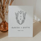 Dieses Schwarz-Weiß-Blumenzettel aus der Daphne Collection eignet sich hervorragend für eine traditionelle Hochzeit oder ein traditionelles Ereignis. Das schlichte und dennoch klassische Design zeichnet sich durch ein elegantes und zeitloses Wappen-Monogramm aus, das mit Blumen und Grünpflanzen die Initialen des Paares umgibt.