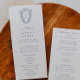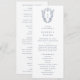 Dieses moderne, schlichte und in Weiß und Blau gehaltene Hochzeitsprogramm der Daphne Collection eignet sich perfekt für eine traditionelle Hochzeit. Das schlichte und dennoch klassische Design besticht durch ein elegantes und zeitloses Monogramm aus königlichem Wappen mit Blumenbeeten und Grünpflanzen, die die Initialen des Ehepaares umgeben. Geben Sie die Namen des Paares, das Datum und den Ort der Hochzeit, Dankeschön-Nachricht, Dienstorden, Hochzeitsfeier und ein optionales "in Loving Memory"-Denkmal ein.