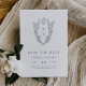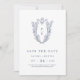 Diese moderne botanische Hochzeit in Weiß und Blau Save the Date aus der Daphne Collection eignet sich hervorragend für eine traditionelle Hochzeit. Das schlichte und dennoch klassische Design besticht durch ein elegantes und zeitloses Monogramm aus königlichem Wappen mit Blumenbeeten und Grünpflanzen, die die Initialen des Ehepaares umgeben.