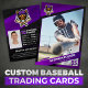 Montrez votre joueur de baseball préféré avec cette carte de trading élégante et élégante. Avec un jeu de couleurs violet et noir audacieux, une disposition classique de carte de base-ball et un design professionnel, cette carte est parfaite pour tous les amateurs de baseball.