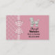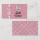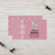 Carte de mise en réseau maman charmante faite sur un fond rose, à droite, et un motif en treillis rose et blanc, à gauche et au dos. Des graphiques d'un ruban à carreaux rose et blanc courant verticalement entre les deux arrière-plans sont décorés d'un nœud à carreaux. Un adorable caniche blanc à l'air duveteux décore le coin supérieur droit de la carte, avec un texte noir personnalisé en dessous. Personnalisez cette carte amusante pour un excellent moyen de rester en contact avec d'autres mamans pour organiser des fêtes, des rendez-vous pour jouer et du gardiennage.