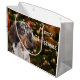 Niedliche, langhaarige oder gepunktete Dackel vor einem Weihnachtsbaum mit etwas passenden Farben Hundeliebhaber Weihnachtsfeiertag große Geschenktasche