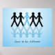 Fünf Strichmännchen - vier davon schwarz und eins blau. Ihre Schatten zeigen ihnen, dass sie alle gleich sind, wie sie in Wirklichkeit sind.