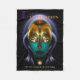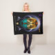 Daria Cyborg Queen ist meine erste humanoide Fraktal-Frau, die ein Portrait aussieht. Das Portrait hat ein Retro-Sci-Fi-Buchcover oder ein Filmplakat mit der Königin in der Mitte, einen Titel über ihr und eine Unterschrift unter ihr. Darias Gesicht besteht aus einem kupfer-metallischen Schädel und einer Bio unteren blauen Oberfläche, die eine mechanisch aussehende Nase, cybernetische Augen und den Schädel-Schließmechanismus umfasst. An der Spitze ihres Kopfes kann man durch den transparenten Teil ihrer elektrischen Kopfaktivität sehen, der mit ihrem fortgeschrittenen cybernetischen Gehirn zusammenfällt. An den Seiten ihres Gesichts und am Hinterkopf ist ein teilweise metallisches Kleidungsstück, das ihr das Aussehen eines Herrschers verleiht; mit einer sternbeleuchteten Halskette als Akzent. Dann für den Hintergrund gibt es ein großes unscharfes Fraktal, um das Portrait ihres Gesichts zu akzentuieren. Daria Cyborg Queen besteht aus 169 Schichten, von denen 59 Fraktale für die Erstellung dieses Portraits verwendet wurden. 30 Fraktale wurden verwendet, um die Augen, Augenhöhlen, Augenbrauen und Wimpern zu erzeugen; 1 Fraktal für die Lippen; 6 Fraktale für die Nase und die Stützstruktur; 2 Fraktale für das Gesicht; 7 Fraktale für den Schädel; 5 Fraktale für das Kleidungsstück; 2 Fraktale für die Halskette; 1 Fraktal für den Hintergrund; 5 Fraktale für zusätzliche Akzente. Zur Erstellung der Fraktale habe ich den Fractron 9000 Fraktal Generator verwendet und die Fraktale zusammengestellt und mit dem Foto Elements 7 Image Editor nachbearbeitet. Daria Cyborg Queen Fleece Blanket