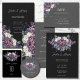 Unsere gotische Hochzeitssuite ist perfekt für Paare, die eine dunkle und launische Ästhetik suchen. Der Blumenstrauß im Wasser ist mit lila, violetten und indigofarbenen Blume, weißen Rosen und einer kühnen und dramatischen Optik versehen. Der dunkle Hintergrund macht die Farben zum Pop und schafft einen atemberaubenden Kontrast.