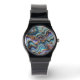 Mit dieser eleganten Armbanduhr, die ein atemberaubendes, lila, dunkelblaues und aquamarines Marmorkunstmuster aufweist, stärken Sie Ihr Outfit. Diese Uhr ist ein ideales Geschenk für sich selbst oder jemanden, der etwas Besonderes ist, und sie dient als schöne Ergänzung zu Ihrer alltäglichen Mode.