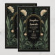 Diese elegante Hochzeitseinladung besticht durch ein beeindruckendes botanisches Jugendstil-Design mit aufwändigen Golddetails auf schwarzem Hintergrund. Blühende Blumenelemente und symmetrische Motive schaffen eine ausgeklügelte Vintage Ästhetik, die sich perfekt für Paare eignet, die ein zeitloses, aber dramatisches Hochzeitsthema suchen. Die zarten cremefarbenen Blume und die üppige Vegetation verleihen dem Hotel eine romantische Touch und laden zu gotischen, Vintagen oder naturlich inspirierten Hochzeiten ein. Individuell gestaltbarer Text ermöglicht eine persönliche und raffinierte Feierungsankündigung.