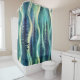 Bold dark aurora night forest pattern shower curtain with vivid watercolor lights—ideal for nature lovers and dramatic winter theme.