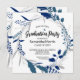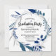 Dunkelblaue Blumenkranz-Abschlussfeier Einladungen oder Zeremonie Einladungen für Ihren besonderen Tag zu personalisieren. Tief blaue Blumen, Blätter und Buds Mit einer schönen Schrift und sans serif Schrift. Personalisieren Sie mit Ihrem eigenen Namen, Jahr des Abschlusses und anderen Angaben.