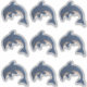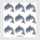 Dieses Vinyl Aufkleber Blatt hat insgesamt neun verschiedene Delphine, die dunkelblau und weiß mit einem Imitat weißen Glitzer aussehen. Sie befinden sich in einer Sprungposition mit einem schwarz-weißen wirbeln Auge.
