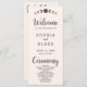 Das Seashell Moon Phases Celestial Wedding Program ist eine atemberaubende Mischung aus natürlicher Eleganz und himmlischem Charme. Dieses Hochzeitsprogramm besticht durch eine einzigartige Muschelfarbenpalette, die an die sanften Farbtöne am Meeresufer erinnert und eine schöne Kulisse für eine moderne und dunkelgraue Phase des himmlischen Monddesigns bietet. Die Mondphasen, die in ausgeklügeltem dunkelgrau dargestellt werden, schmücken das Hochzeitsprogramm und zeigen die bezaubernden Übergänge des Mondes vom Halbmond zum vollen und hinteren Teil. Dieses himmlische Design fügt eine Touch von Mysterium und Magie hinzu und ist somit die ideale Wahl für Paare, die ein einzigartiges und mystisches Hochzeitsprogramm suchen. Der Muschelhintergrund ergänzt die himmlischen Elemente und schafft eine harmonische und fesselnde visuelle Anziehungskraft. Auf der Rückseite des Programms finden Sie eine Liste Ihrer geliebten Hochzeitsfeier-Mitglieder, die in klassischem Schwarz-Grauen Text mit einem einfachen Block-Schriftart präsentiert werden. Die Wörter "Welcome", "Ceremony" und "Wedding Party" sind in einem hübschen Schriftart mit dekorativen Schriften mit einer Touch von Eleganz und Eleganz gestaltet. Unser Seashell Moon Phases Celestial Wedding Program ist für Paare gedacht, die die Schönheit der himmlischen Wunder und den zeitlosen Reiz des Meeres schätzen. Ob Sie eine Hochzeit zum Himmelsthema planen oder einfach gewollt werden, um Ihre Feier mit einer Touch kosmischen Charmes zu bereichern, ist dieses Hochzeitsprogramm die ideale Wahl. Erleben Sie die mystische Energie der Mondphasen und ließ Ihren Hochzeitstag mit himmlischer Pracht und natürlicher Gnade.