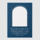 Elegante Hochzeitseinladung in tiefblauem Perlum mit einem bogenförmigen Rahmen, damit Sie ein romantisches Foto aus Braut und Bräutigam unter der zwanglosen Hochzeitsworte in Weiß gegen ein durchsichtiges, dunkelblaues Blau legen können. Elegante Schriftart und zarte Details in Weiß. Peekaboo Hochzeitseinladung in Vellum mit Bogenform für Ihr Foto in Blau und Weiß.