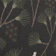 Dark Charcoal Bird & Pine Tree Pattern – Japandi Tapete