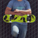 Fett, minimalistisch und stilvoll - dieses Skateboarddeck-Design zeichnet sich durch glänzende schwarze Kirschen auf einem beeindruckenden grünen Hintergrund aus. Eine perfekte Wahl für Skater, die Straßenkunst, Kontraste und einzigartige grafische Details Liebe geben. Fahren Sie es oder hängen Sie es als Kunstaussage an Ihre Wand.