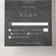 ERHÄLTLICH MIT ODER OHNE QR CODE ODER MIT ODER OHNE AUSWAHL DES ABENDS. Dieses Design zeichnet sich durch einen dunklen Holzkohle schwarz und silber marmorierten Hintergrund mit dem Monogramm der Braut und des Bräutigams aus. Erstellt von der einfachen Farmhouse Press.