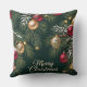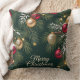 Introduce a touch of holiday glamour with this luxurious "Merry Christmas" throw pillow. Set against a deep, elegant emerald green background, the rich pattern features classic red and gold ornaments interspersed with festive pine needles. This design offers a sophisticated, dramatic flair to any room. The dark color palette is perfect for creating a cozy, high-end look. Elevate your decor with this opulent holiday statement.