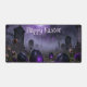 A mysterious Easter scene set in a foggy graveyard with glowing purple eggs and a gothic cathedral in the background. Dark tones, misty atmosphere and eerie lighting create a unique, haunting twist on traditional Easter imagery.