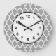 Dark Gray White Moroccan Quatrefoil Pattern #4 Große Wanduhr