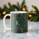 Elegante Weihnachtswasserfarbe Botanische Monogram Tasse mit einem Gewürz von sanften modernen Grün von Kiefern und Beeren auf einem dunkelwaldgrünen Hintergrund und Ihrem eigenen Monogramm und Namen. Bitte kontaktieren Sie uns unter cedarandstring@gmail.com , wenn Sie Hilfe beim Design oder den passenden Produkten benötigen.