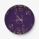 Dark Lila Gold Floral Ornaments Monogram Script Pappteller