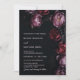 This elegant dark moody floral wedding invitation features purple and red peony flowers on a black background. Dark romantic aesthetic wedding invitation. With a scannable qr code on the backside.