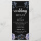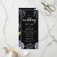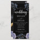 A bold and sophisticated Wedding Program featuring dramatic dusty blue and grey floral illustrations against a stark black background. The crisp white typography and classic layout set an elegant, moody tone. Perfect for a formal evening or a sophisticated wedding.