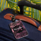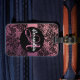 Ein stilvolles, schwarzes, dramatisches Blumenmuster, das in einer schimmernden rosa, blauen Kulisse überragt ist. In der Mitte befindet sich ein schwarzer Kreis, in dem man ihn mit einem Buchstaben, Logo und Namen personalisieren kann. Bezaubernde, schicke, gmädchenhafte Vibes. Teil der stilvollen Black Floral Monogram Collection.