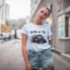Das Material ist eigentlich gute Qualität, der Stoff ist nur etwas verzogen so dass der Drück leicht schief aussieht. Der Druck ist gute Qualität, habe das T-Shirt schon einige male gewaschen.