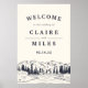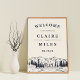 Herzlich willkommen auf Ihrer rustikalen, waldreichen oder bergischen Hochzeit mit unserem Poster "Mountain Sketch", das eine gezeichnete Darstellung von Berggipfeln, Kiefern und einem fließenden Fluss enthält. Fügen Sie Ihre Namen, das Hochzeitdatum und den persönlichen Willkommenstext mit den angegebenen Feldern hinzu.
