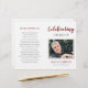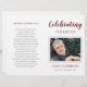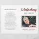 Dieses elegante, dunkelrote und schwarze Foto-Gedenkprogramm ist eine wunderschöne Möglichkeit, sich an einen geliebten während der Feier des Lebensservice zu erinnern. Wenn Sie sie empfangen, falten Sie sie einfach in der Mitte zusammen und bieten sie den Festgästen an.