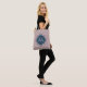 Ein eleganter, dunkelroter Deko mit gewölbtem Jakobsmuster-Totbeutel mit einem navy blauen Quarrefoliengeschirr, das Sie ganz einfach mit Ihrem eigenen Monogramm und Namen personalisieren können. Dies ist Teil der Spiced Apple Scallops Sailor Blue Monogram Spring Collection.
