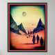 Eine Fantasie. Zwei Monde, schwarzer Rock, sechs Wanderer.