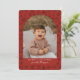 Wünschen Sie Ihren Freunden, Verwandten und Lieben ein frohes Weihnachtsfest mit dieser traditionsreichen Weihnachtsfotokarte mit dunkelroten Weihnachtskribbeln auf einem roten Hintergrund, die den perfekten Rahmen für Ihr Foto in einer Bogenform bietet. Fügen Sie einen personalisierten Weihnachtsgrüßen auf der Rückseite mit einem anderen Foto Ihrer Familie.