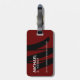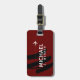 Ein cooles und modernes Gepäckanhänger, personalisiert mit dem Namen und der Initiale des Reisenden auf dunkelrotem Hintergrund