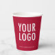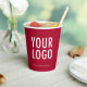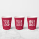Easily personalize our 8 ounce paper cups with your business logo and custom text. These FDA approved paper cups are for cold and hot drinks. The dimensions for the 8 oz cups are 3.75 inch x 3 inch. Available with or without lids. Also available in 12 oz size. Designed in dark red and other colors (all colors are customizable). Sold in sets of 8. Low minimum order quantity and no setup fee. Printed in the U.S.A.