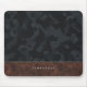 Rugged und maskuline Tarnung Muster und Imitate Leder personalisierten Name Maus-Pad. Das Design ist mit einem dunkelschiefergrauen Camouflage-Muster verbunden mit braunem Imitat geheftetem Leder, um ein stilvolles, robustes Aussehen zu schaffen. Personalisieren mit Namen. Camouflage Kunstwerke von Moodthology.