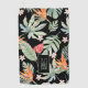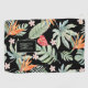 Schwarzer Hintergrund für eine blumengeschmückte und blumenreiche Fantasie der bunten Blüten des Paradies, Anthurium und Plumeria, die über den Blätter der Monstera und Palmen liegen. Ein sehr hübscher, hawaiianischer Look, der Spaß macht und leicht ist. Lodene Grüntöne, Rot-Orange und Orangen mit einem pachy-rosa Akzent. Alle sind Aquarellfarben mit Blumen- und Blattelementen. Personalisieren Sie mit modernem Monogramm im Rechteck.