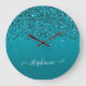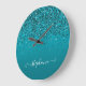 Dark Turquoise Glittery Gradient Girly Calligraphy Große Wanduhr
