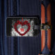 Romantisch und dunkel: lila Rose in Form eines Herzens und ein Blutungsskript an der Grunge