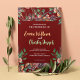 Dunkle Wilde Blume Hochzeitseinladungen mit einfachen Rahmen wilde Blume, die mit stilvollen Aquarellen gemacht wurden. Dunkle und farbenfrohe Einladung zur Hochzeit. Roter Hintergrund Version Hochzeit Einladung.