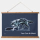 Ein geistreicher, dunkler Wolf (Canis lupus) wirft einen Mondlichtschatten, während er sich über das Land bewegt. Fügen Sie Ihren eigenen Text hinzu. Sie können den Schriftart des Textes sowie die Farbe des Textes und des Hintergrunds ändern.