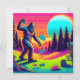 Bigfoot sasqautch spielen Disc Golf und verlieren! Nur ein paar Spaß für Sie, die im Wald spielen. Farben geben Ihnen Retro-Vibes.